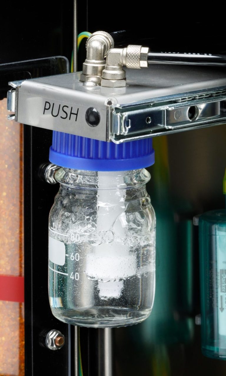 Der im PKS100E integrierte Partikelgenerator basiert auf einem bewährten NaCl-Spraygenerator und erzeugt mittels einer modifizierten Laskin-Düse gleichmäßige, stabile Partikel. Durch die anschließende Trocknung entstehen thermisch stabile Salzpartikel mit definierter Größenverteilung (Median 60-90nm und GSD=1.7) die optimal für präzise Kalibrierprozesse geeignet sind. In Kombination mit der hohen Reproduzierbarkeit und konstanten Partikelqualität sorgt er für zuverlässige und normgerechte Messergebnisse.